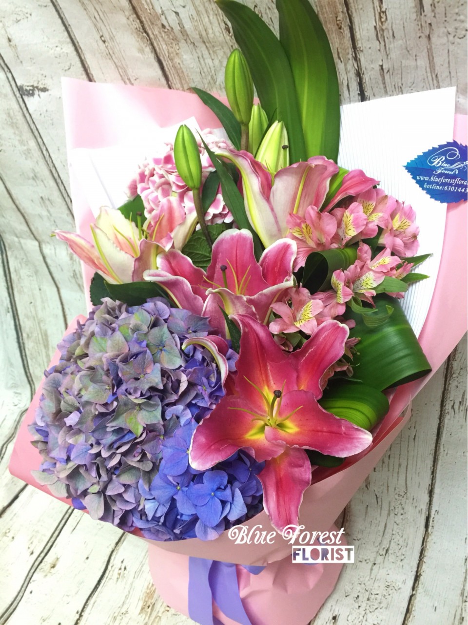 *百里香*台灣粉紅香味百合繡球花束