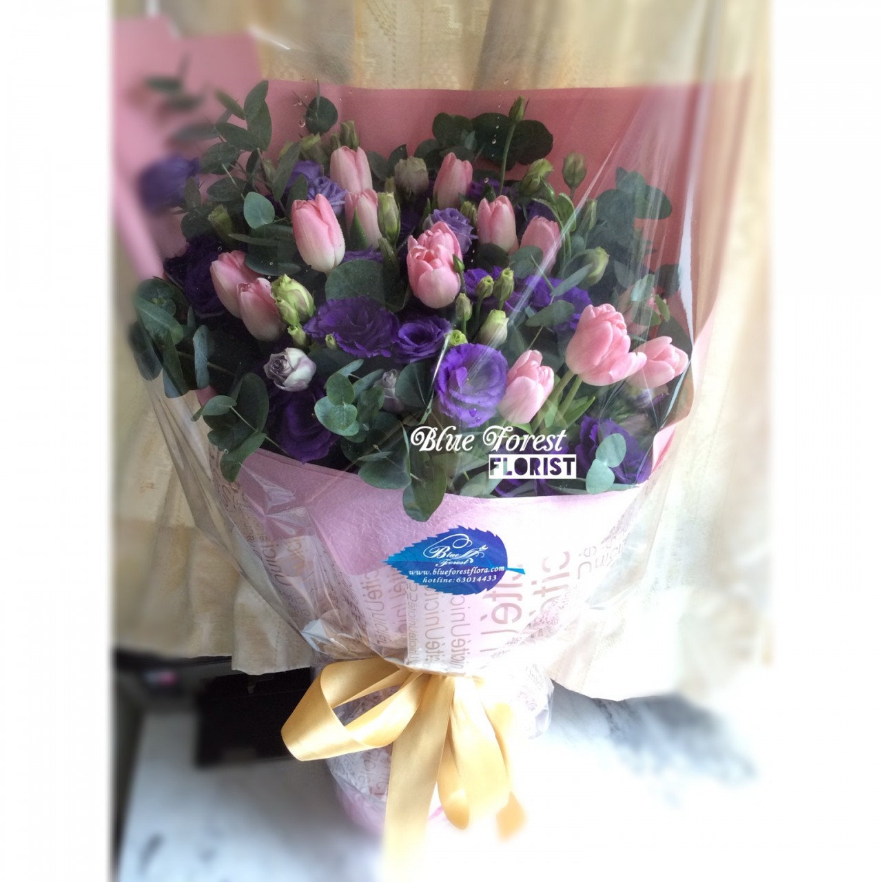 淺紫/粉紅荷蘭鬱金香配滿天星花束