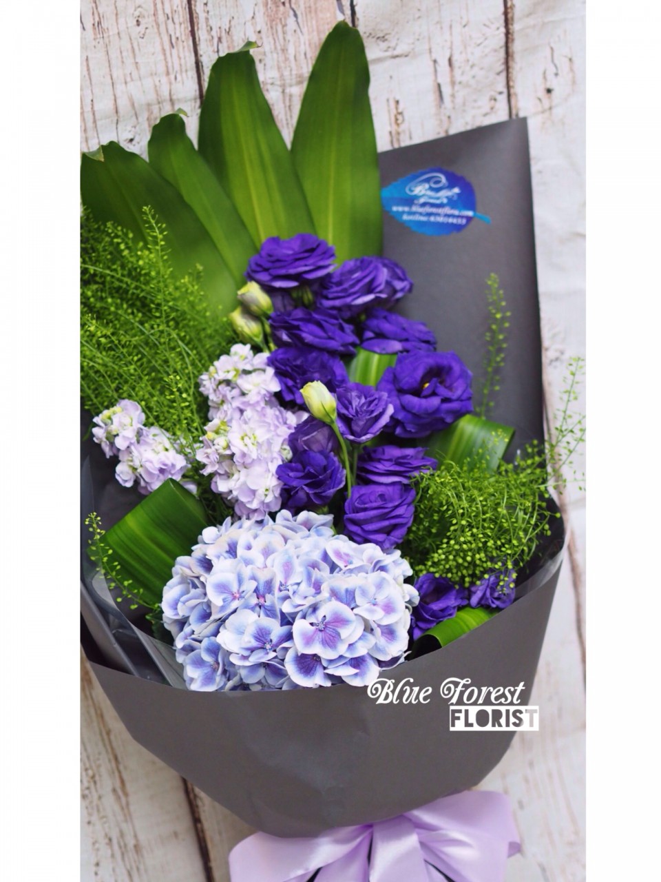 * 華麗邂逅*洋桔梗配紫繡球長形花束