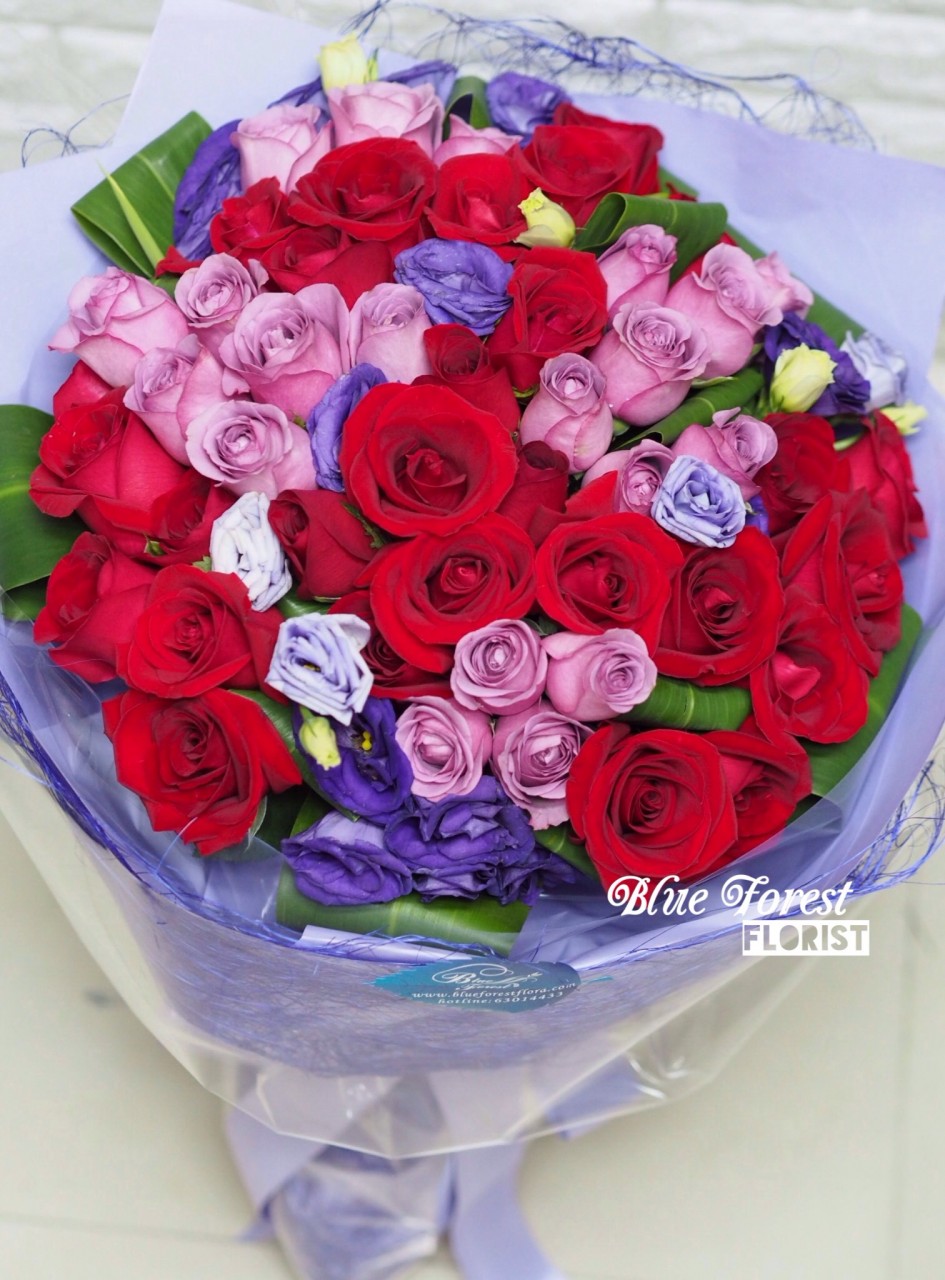 * 50枝紅玫瑰拼紫玫瑰圓形大花束