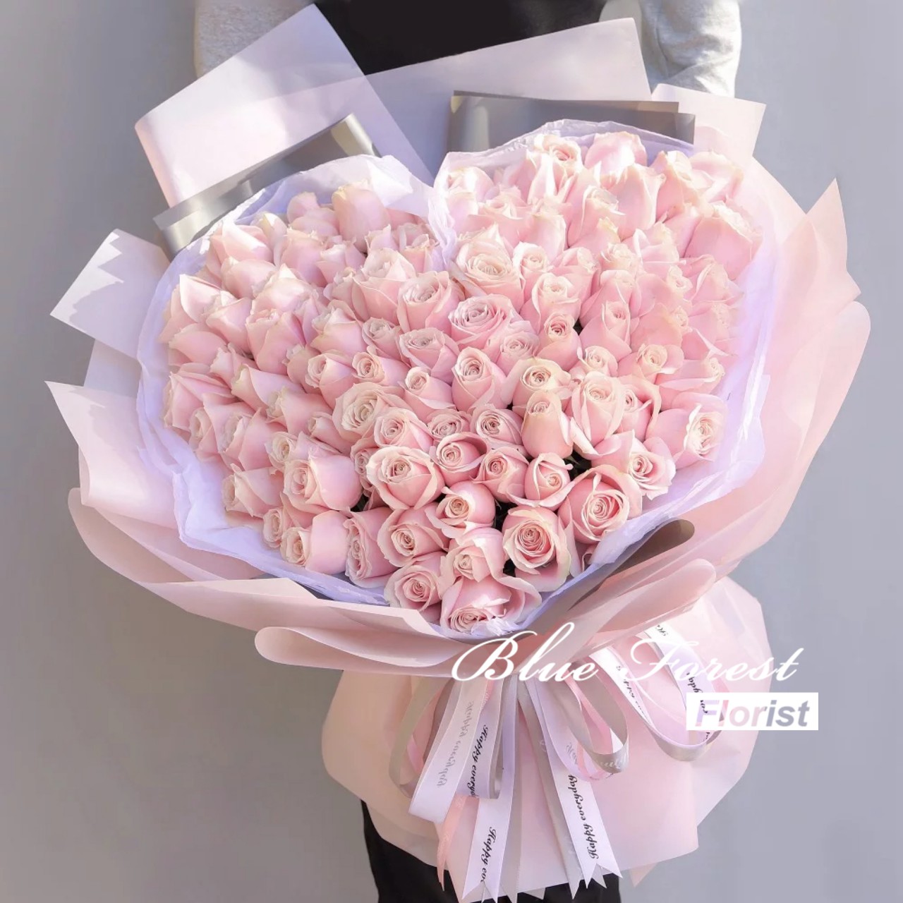 情人節系列 99枝淺粉紅心形玫瑰花束