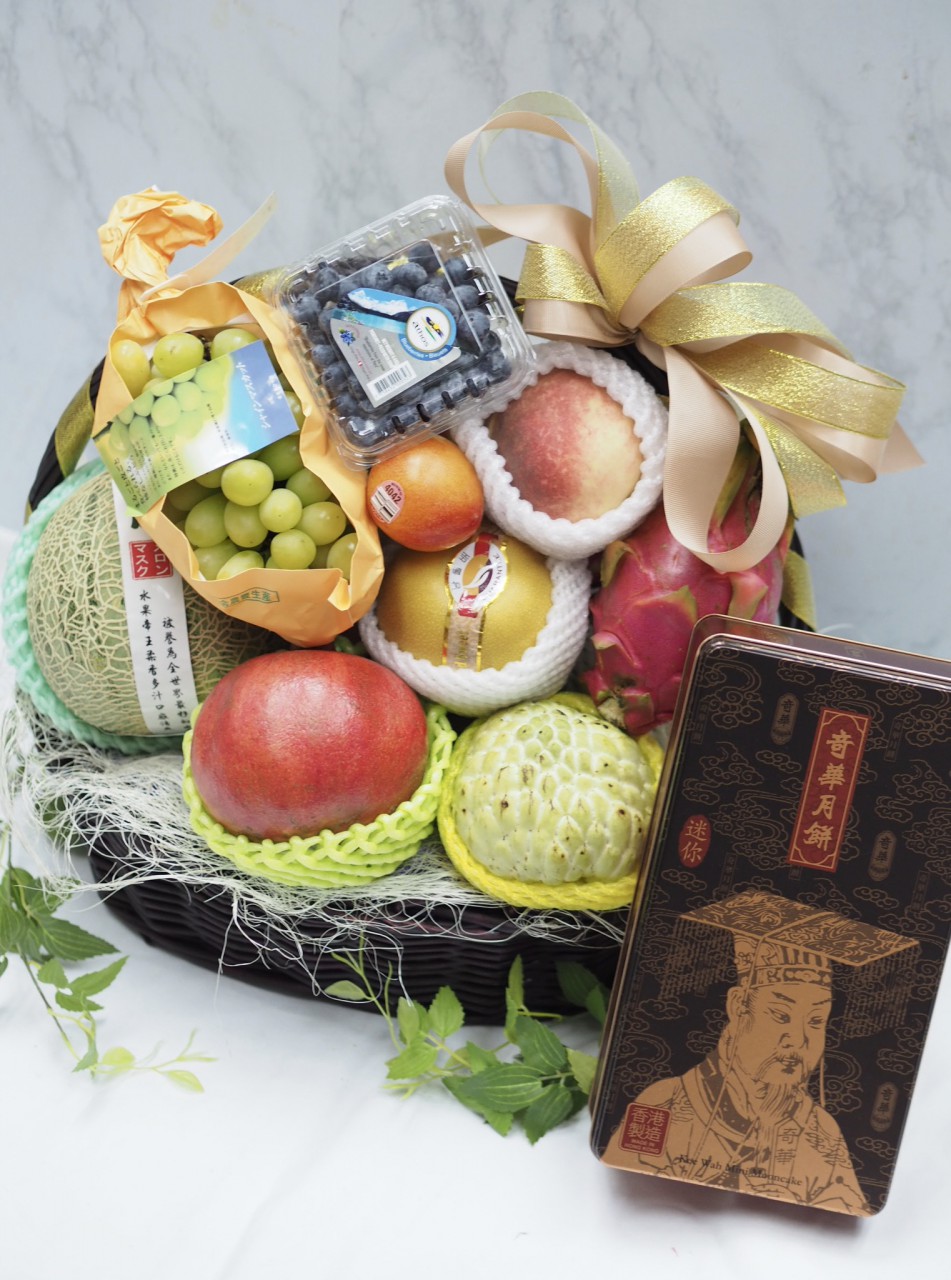 *9款時令水果+奇華至尊雙黃白蓮蓉月 餅1盒(迷你4個裝)