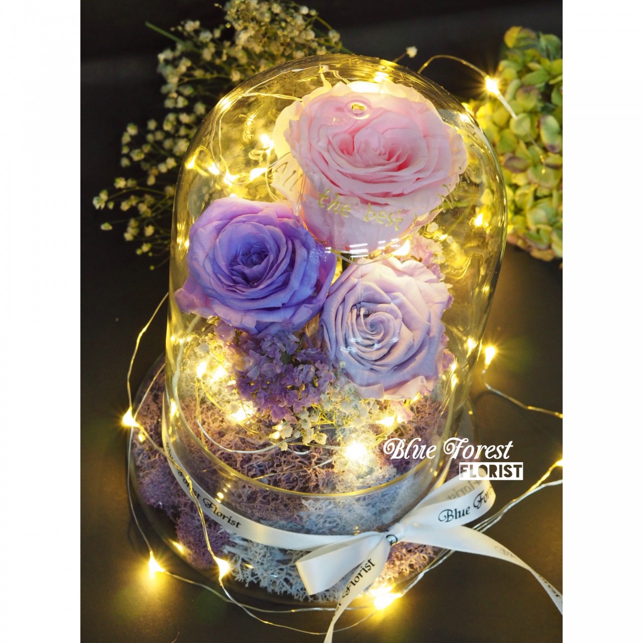 - 保鮮•愛系列 *發光玻璃罩玫瑰保鮮花(3拼色)*可免費刻上名或祝福字句*