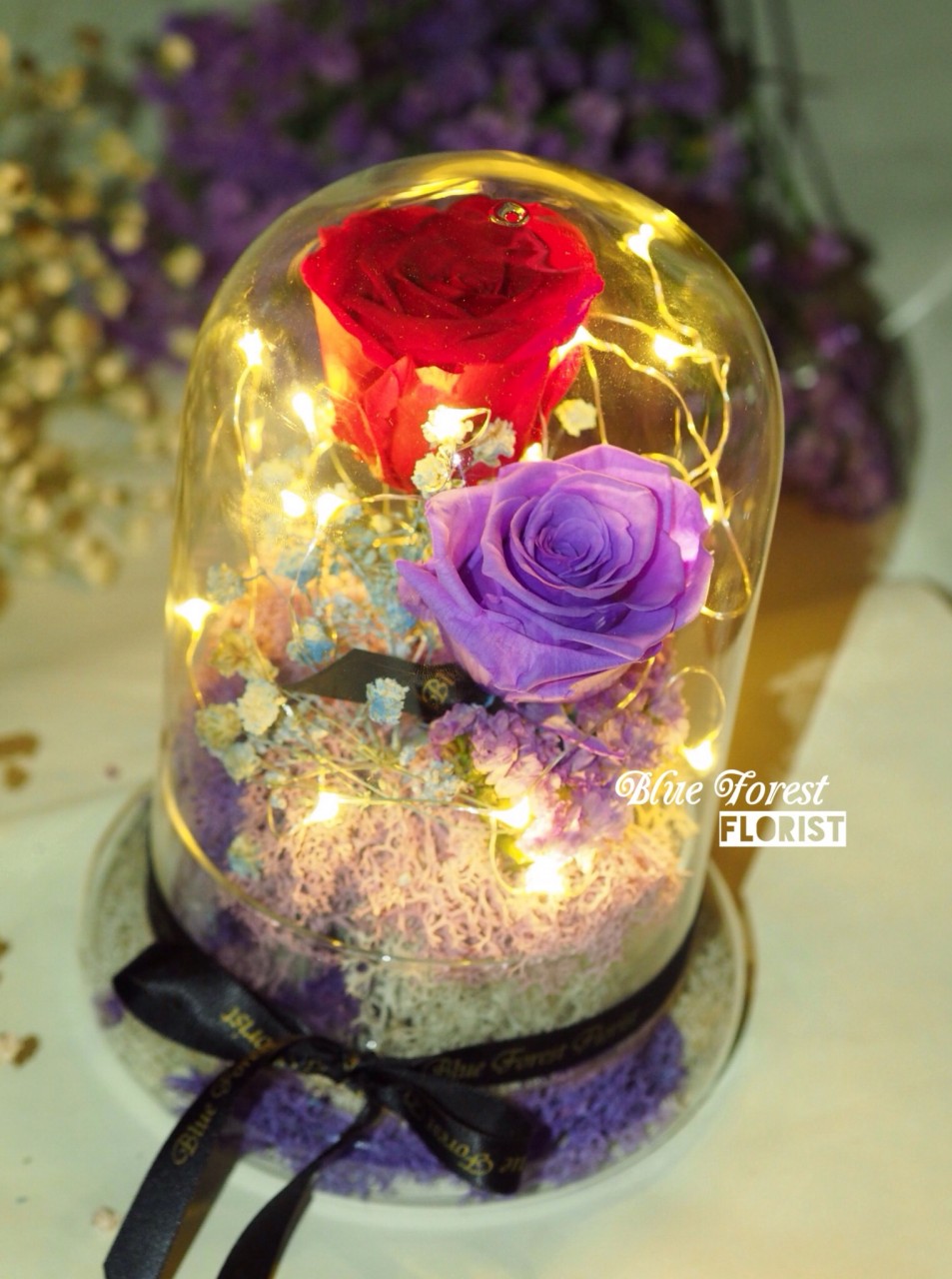 保鮮•愛系列 *LED玻璃罩玫瑰保鮮花(紅/紫)*可免費刻上名或祝福字句