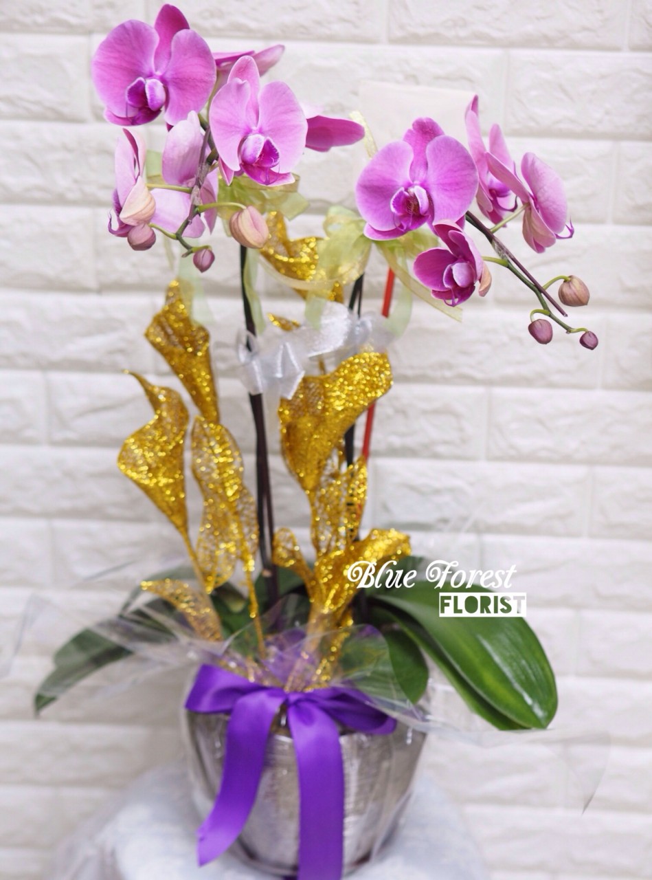 - 台灣蝴蝶蘭2支裝連盆多色選擇(粉紅/紫色/白色)