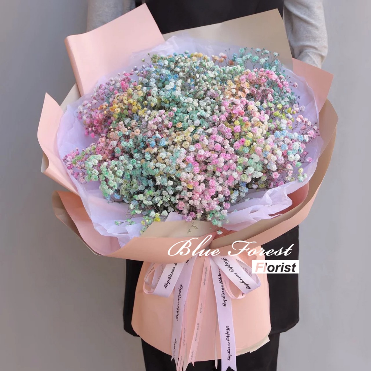 情人節系列 來自星星的你*韓式淺紫色滿天星花束(可自選顏色粉紅色,藍色,紫色)