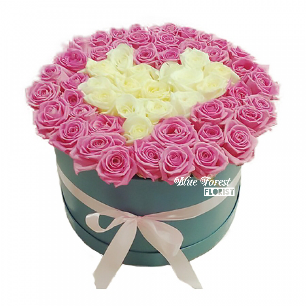 心形50枝白/粉紅玫瑰花盒