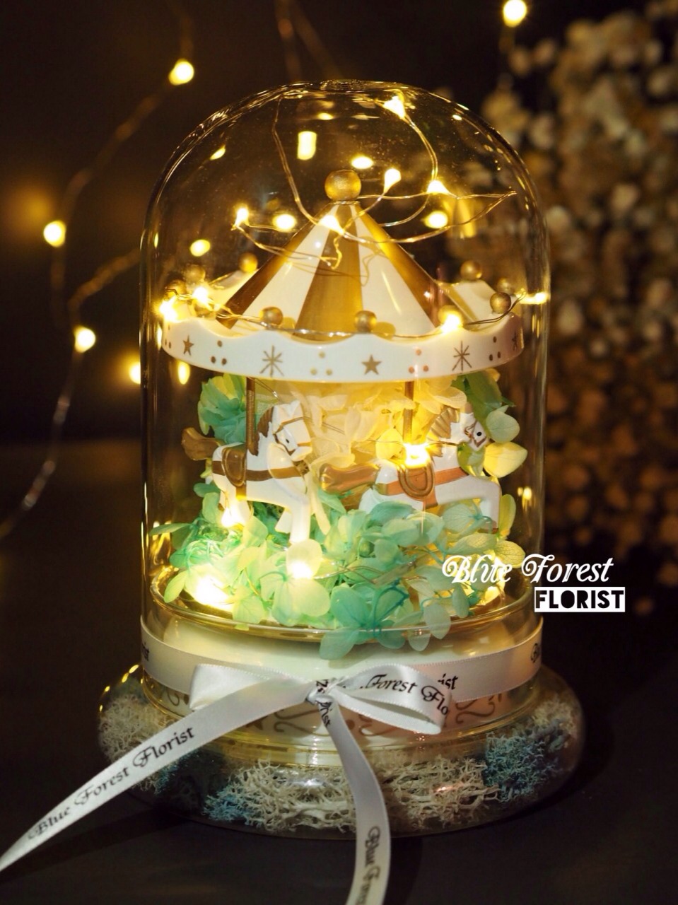 保鮮•愛系列 *發光旋轉木馬保鮮花(藍色)*可免費刻上名或祝福字句