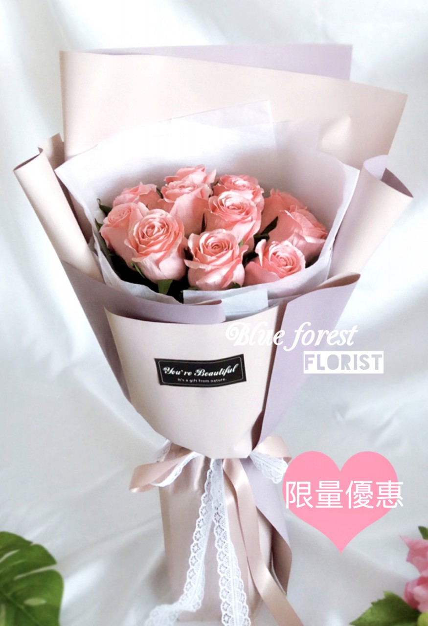 情人節系列 簡約款式11枝淺粉紅玫瑰花束*