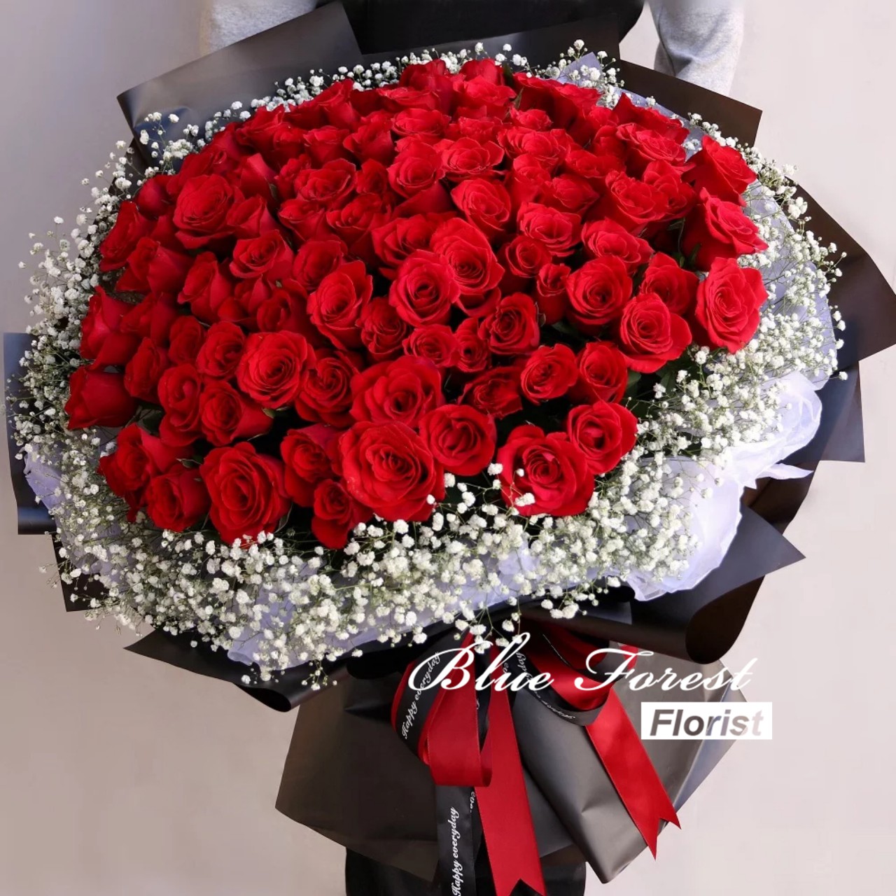 99枝紅玫瑰配滿天星花束(可選白色/黑色包裝)