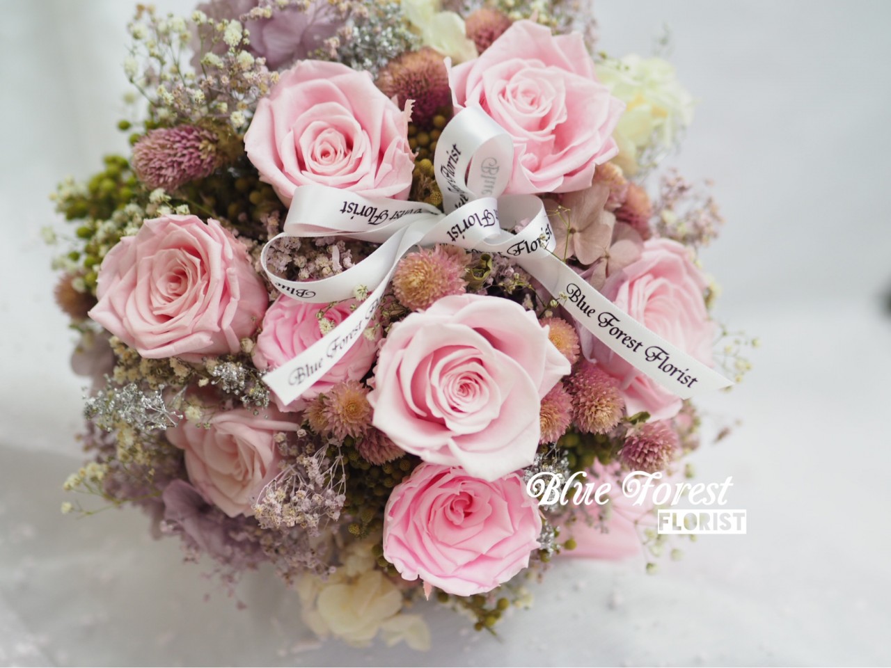 日本淺粉紅玫瑰保鮮花花球