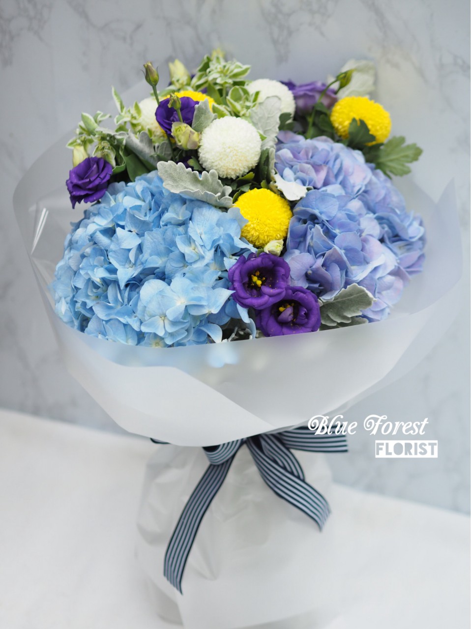 * 雙色桔梗配荷蘭淺藍大繡球花束