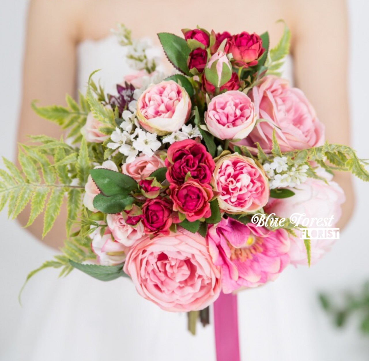 粉佳人*粉紅玫瑰配滿天星韓式花球