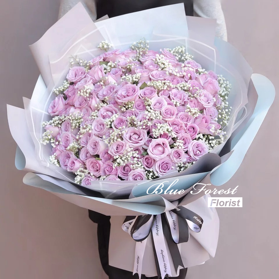 紫在乎你*99枝淺紫玫瑰滿天星花束