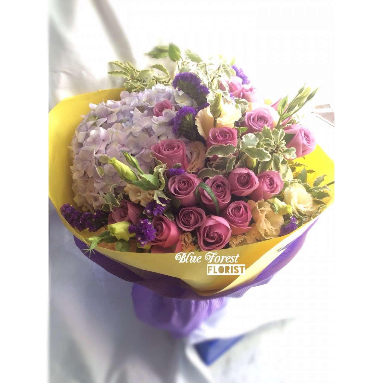 荷蘭繡球配紫玫瑰花束*