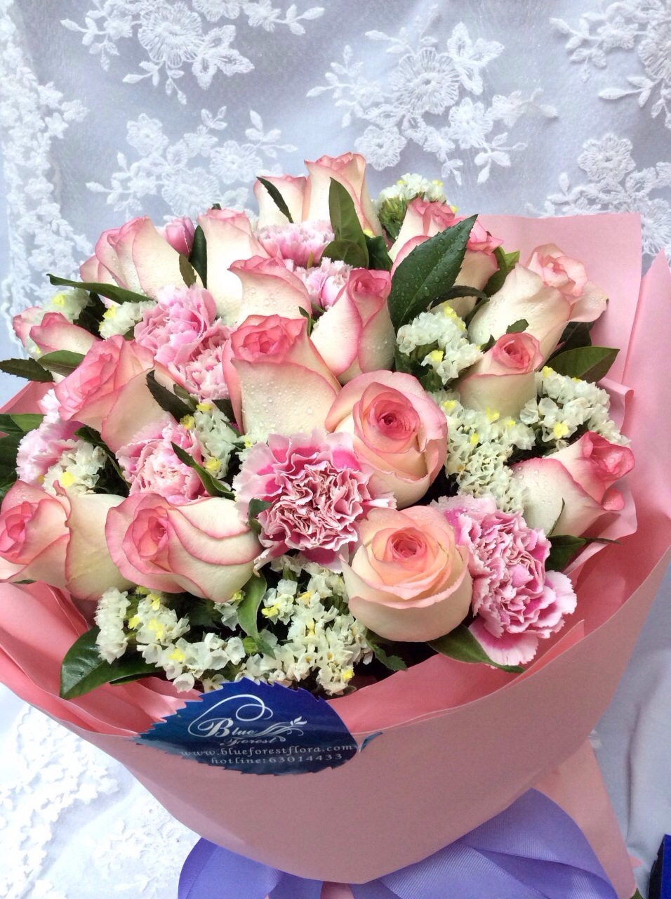 荷蘭紫色馬蹄蘭配玫瑰花束