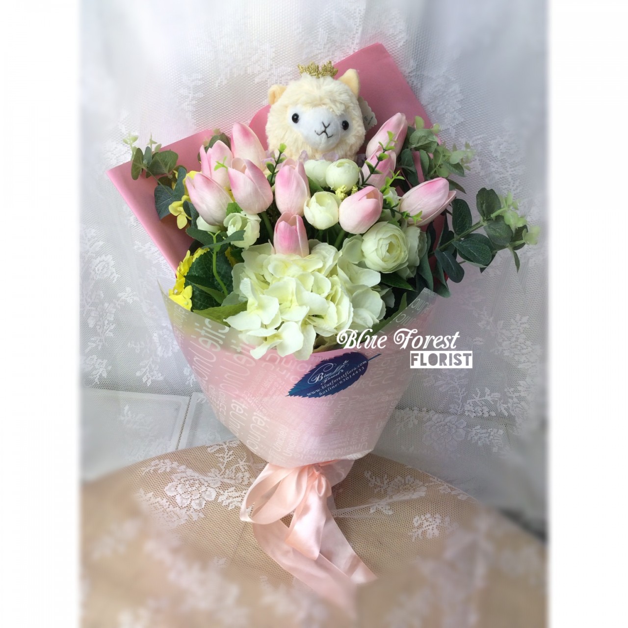6枝裝粉玫瑰保鮮花滿天星花盒*永不凋謝