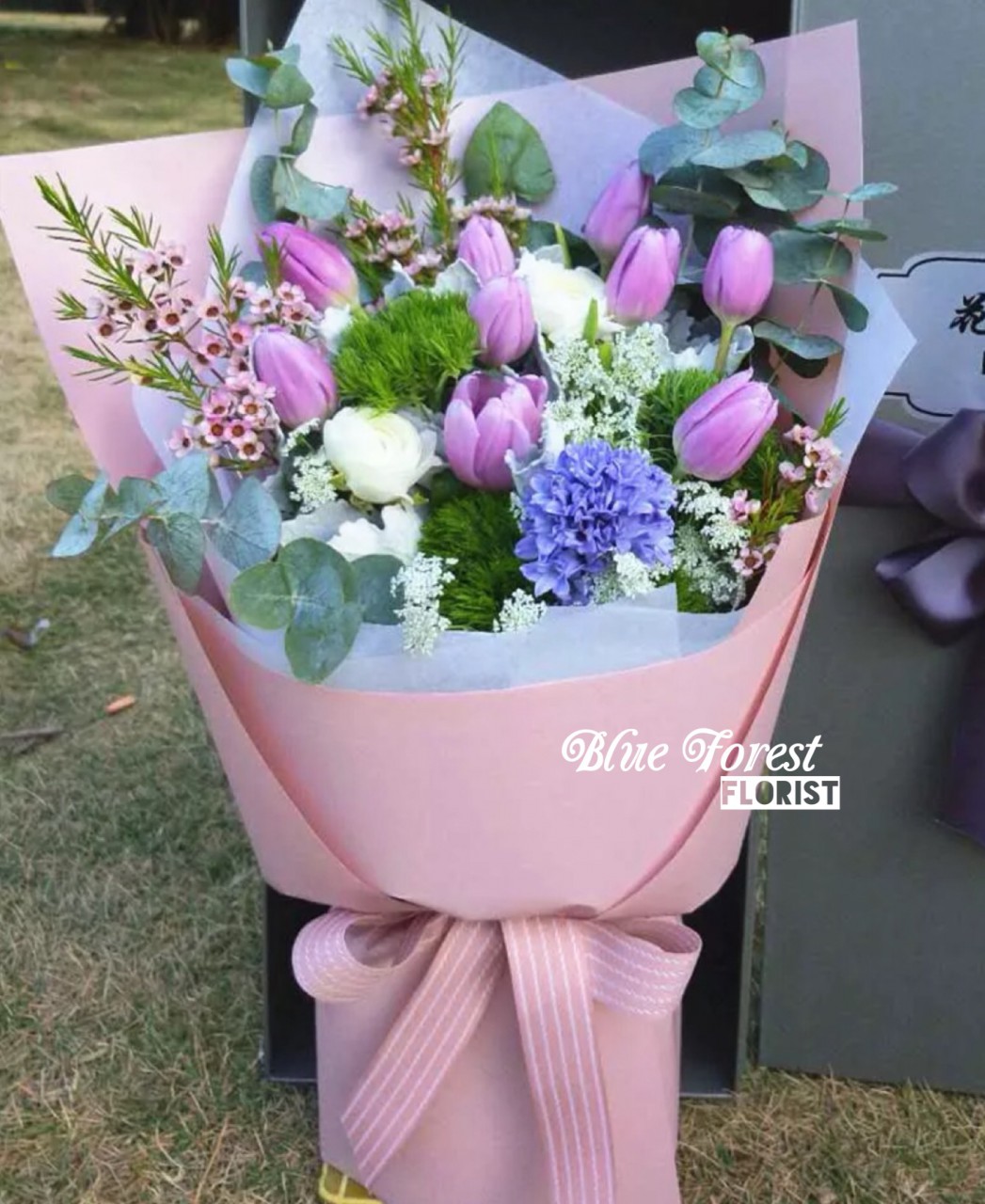 *荷蘭紫色鬱金香配滿天星花束
