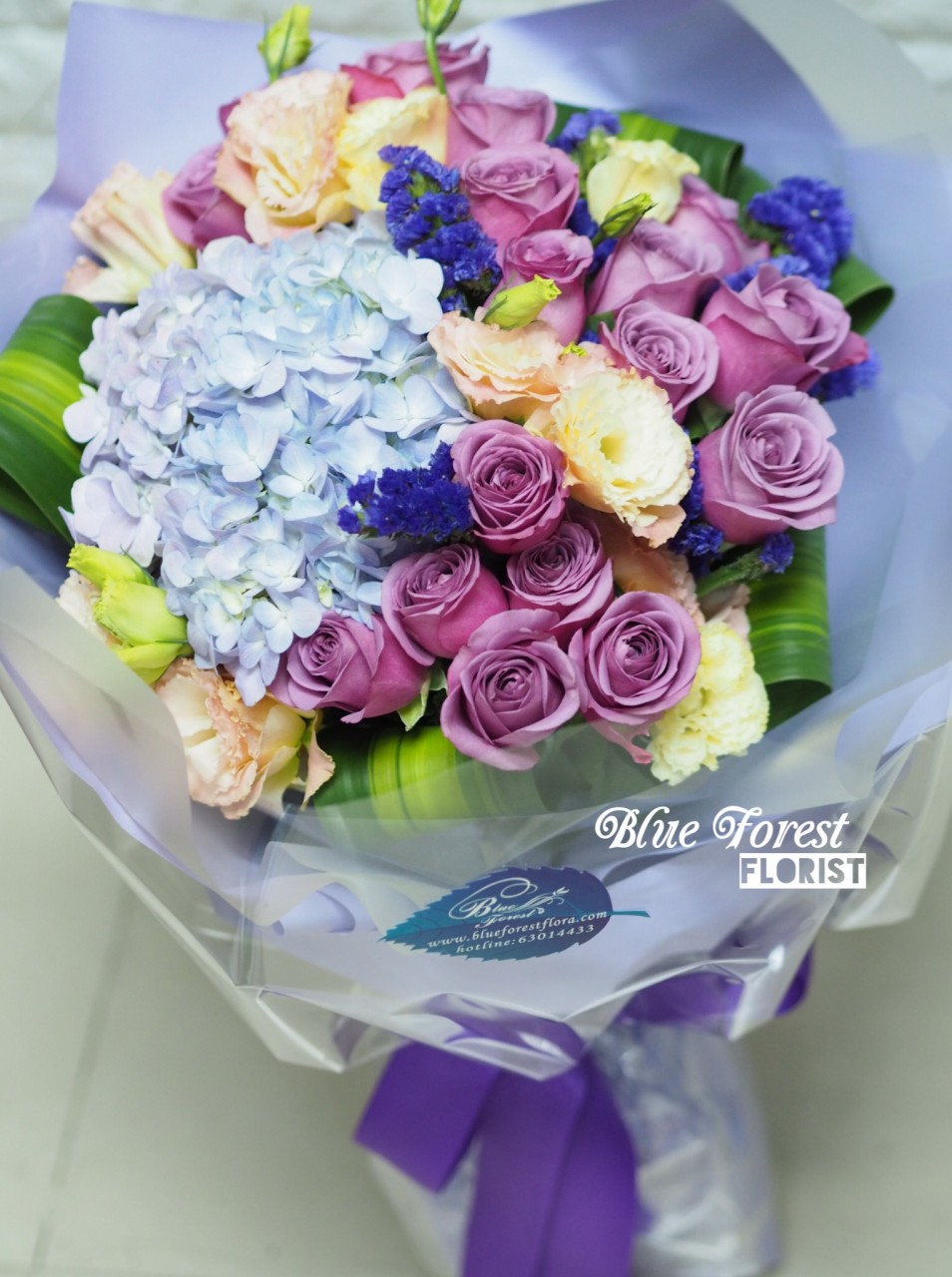 荷蘭繡球配20枝裝紫玫瑰花束$788