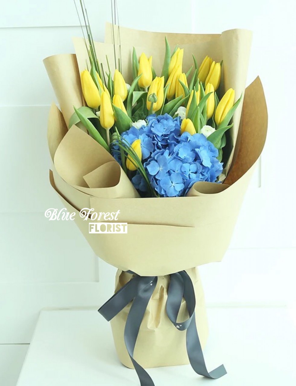 * 雙色桔梗配荷蘭淺藍大繡球花束