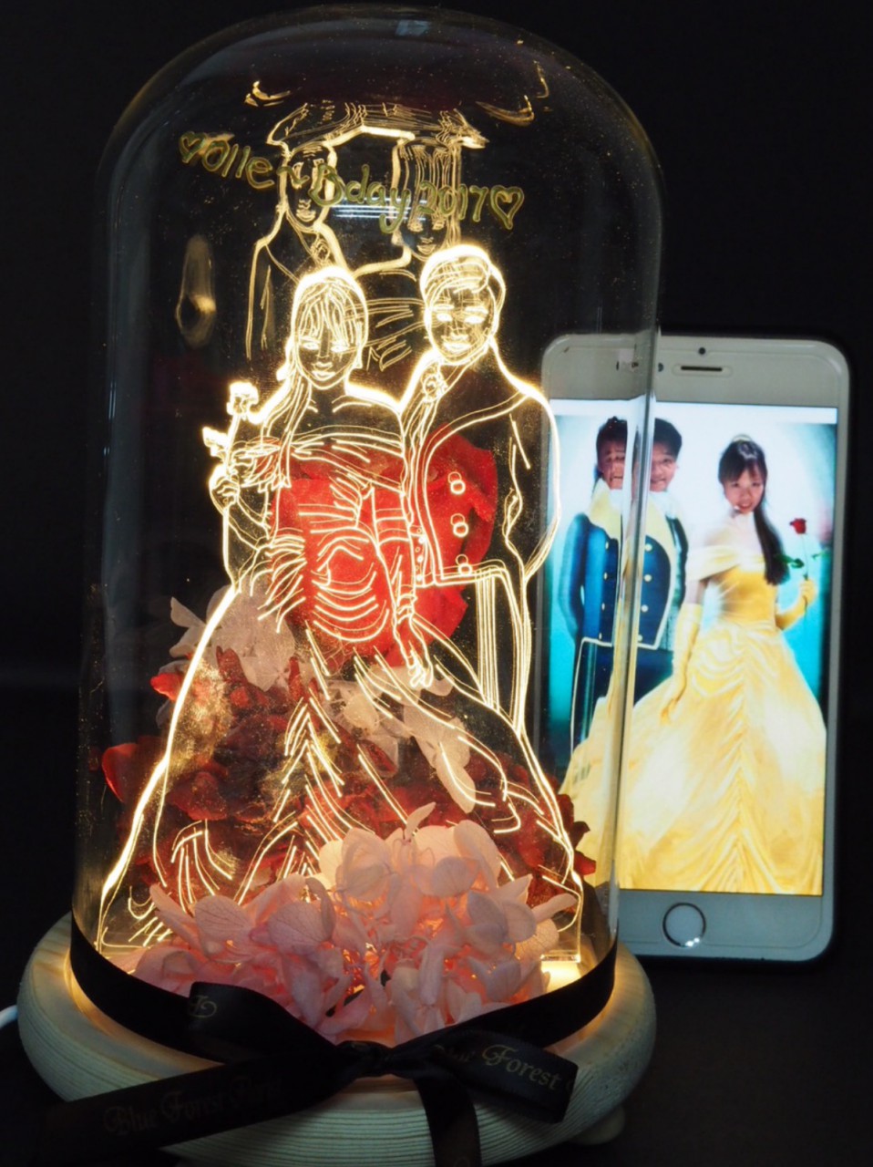 保鮮•愛系列 *發光玻璃罩玫瑰保鮮花(朱古力色)*可免費刻上名或祝福字句*