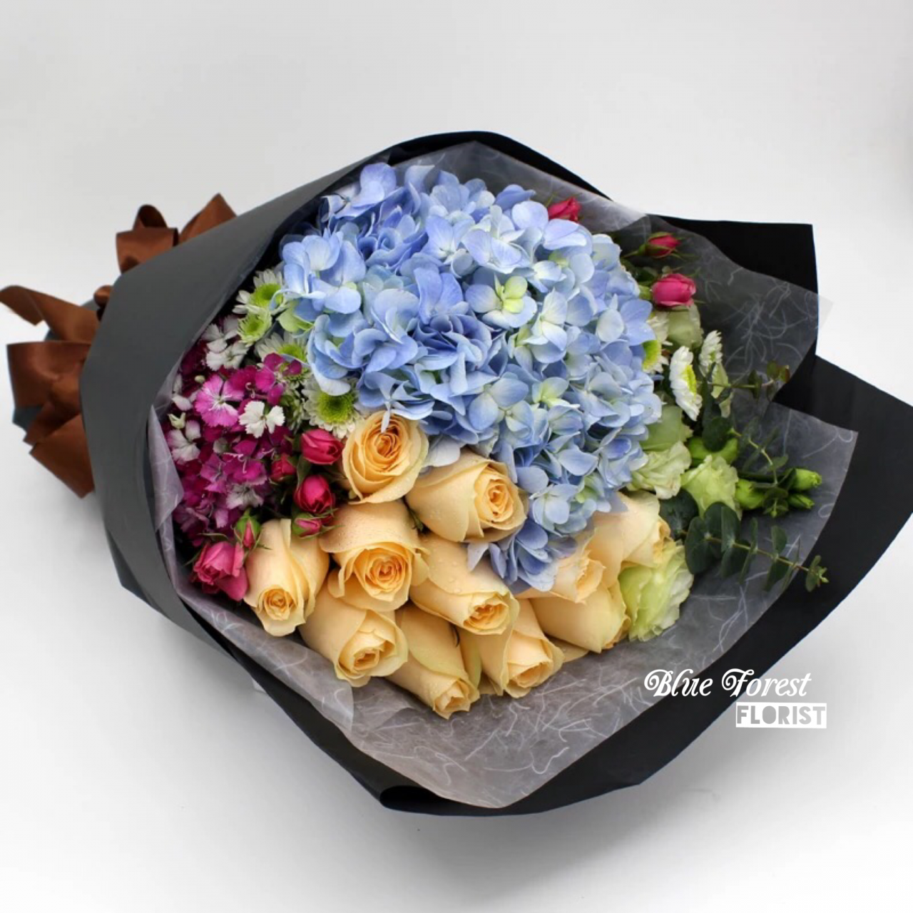 * Golden rose*18枝香檳金玫瑰配荷蘭繡球花束