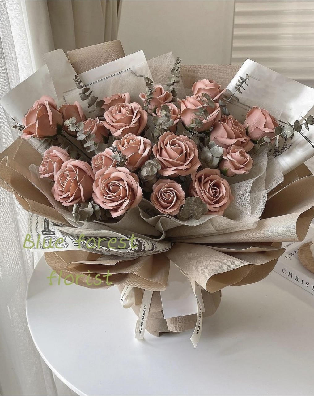 香薰淺啡色玫瑰花束18支裝
