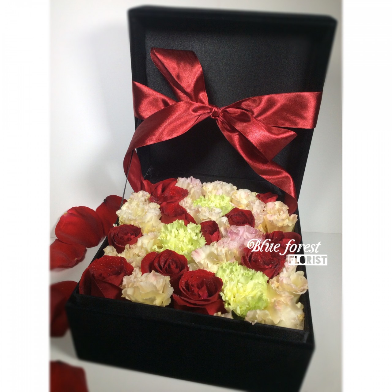黑色幽默*紅色玫瑰配黑絲絨花盒