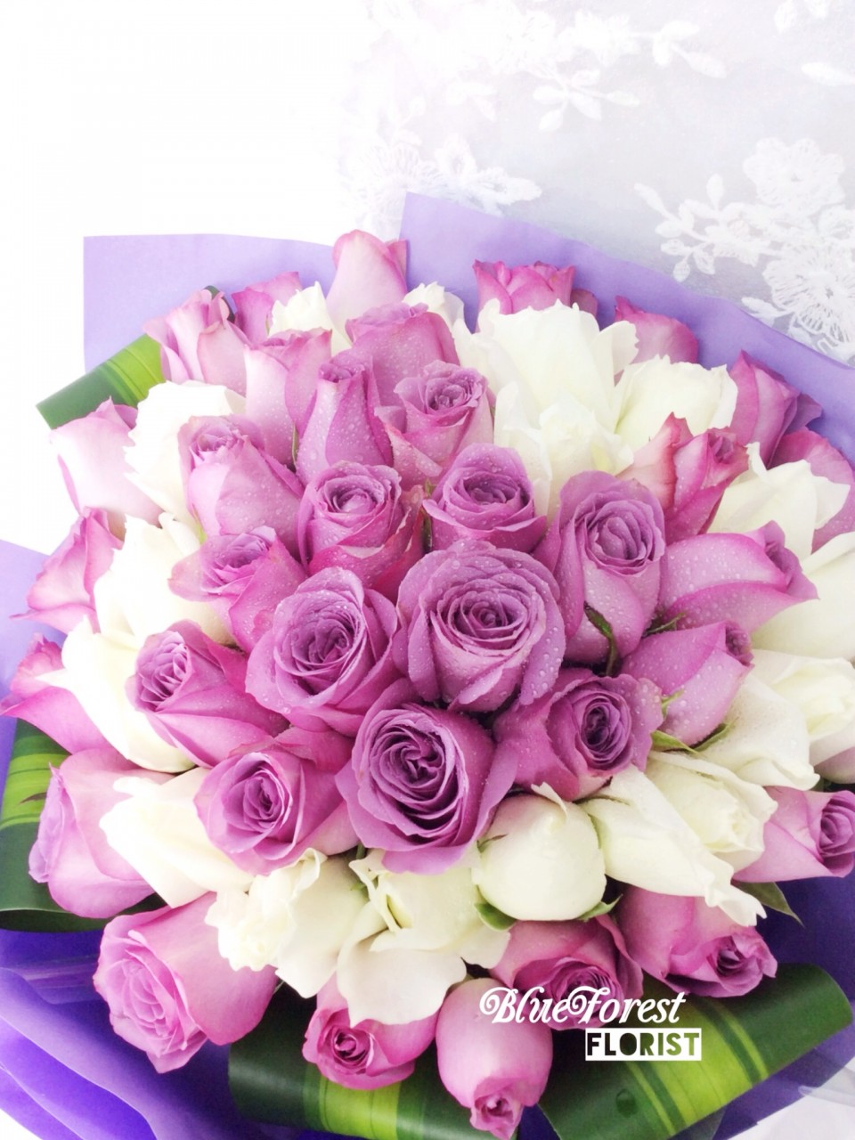[人氣之選]心紫有你*紫白雙色玫瑰心形花束39支裝