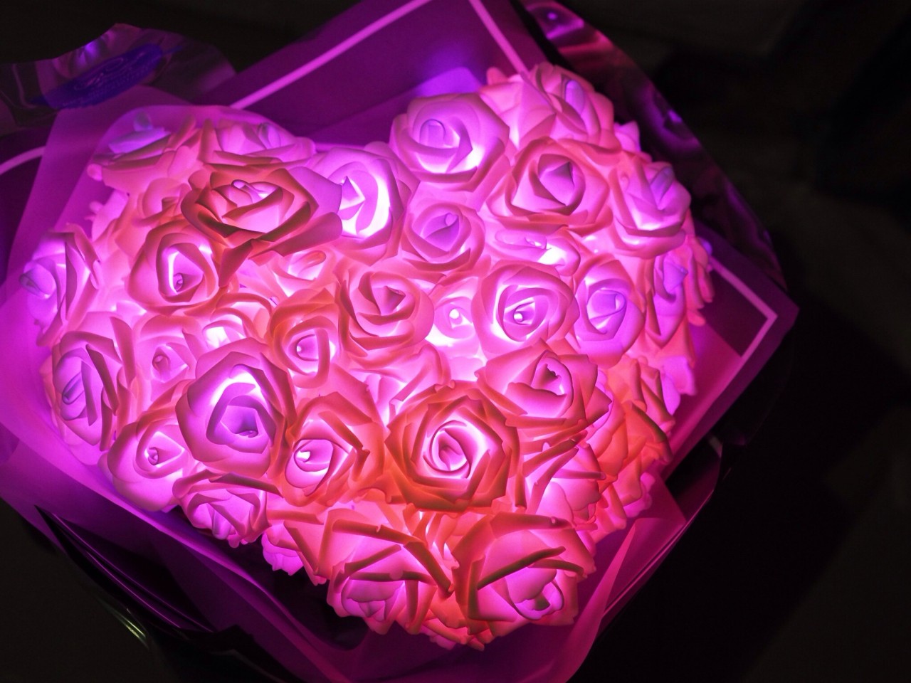[浪漫推薦]小幸運 *發光玫瑰花束(60朵裝仿真花-紫紅色玫瑰)