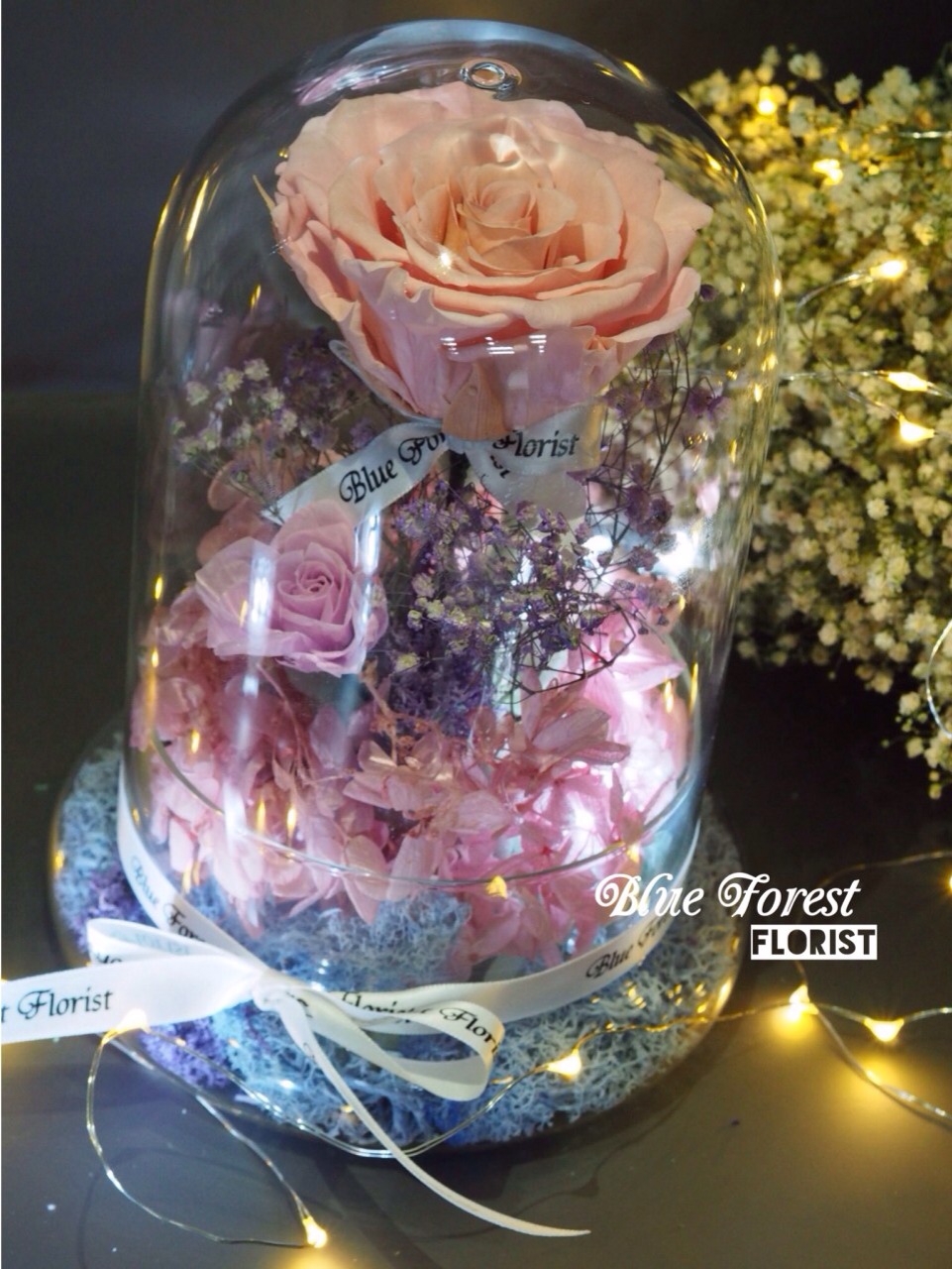 保鮮•愛*發光玻璃罩玫瑰保鮮花系列