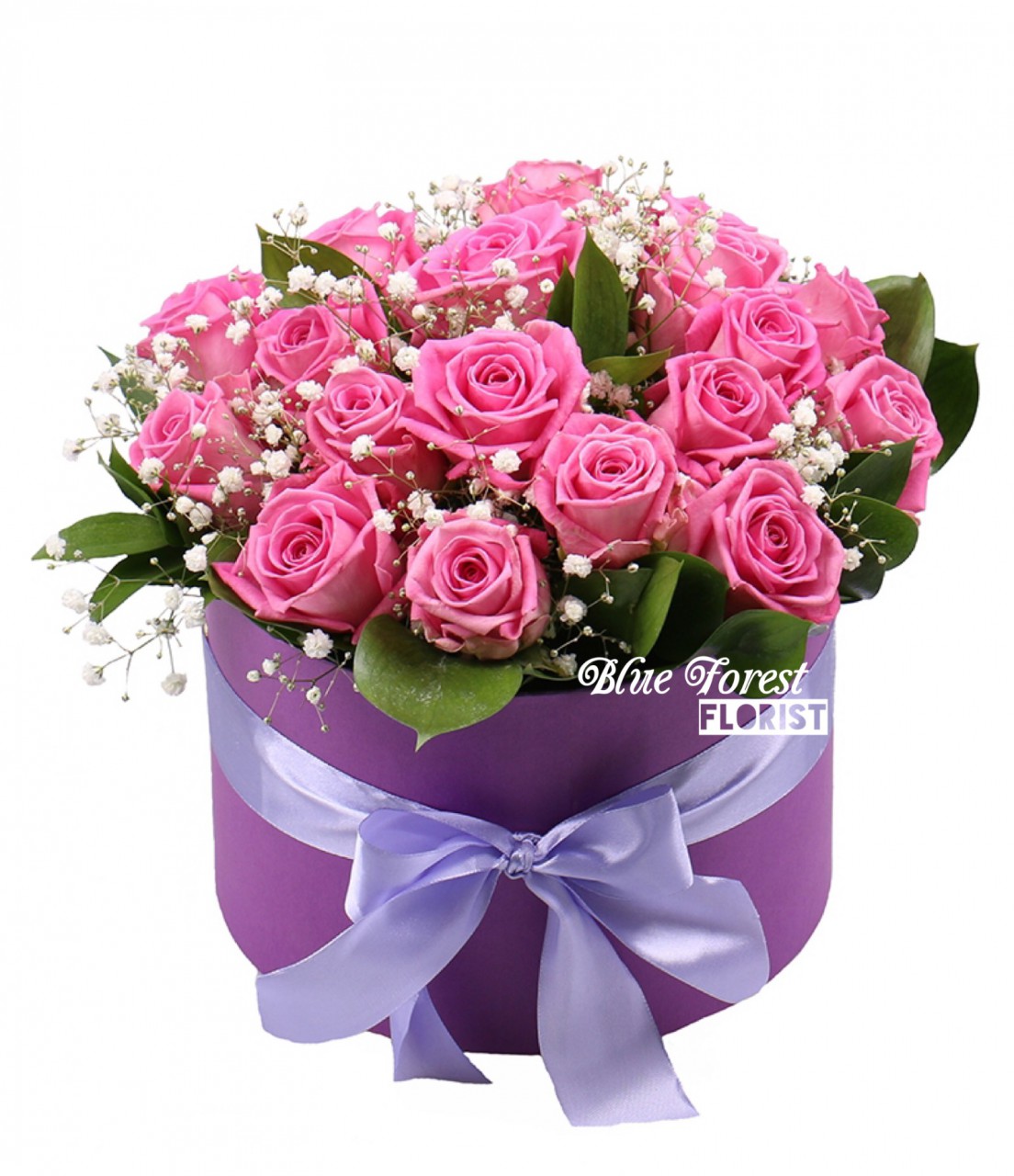 18枝裝深粉紅色玫瑰花盒(配滿天星)