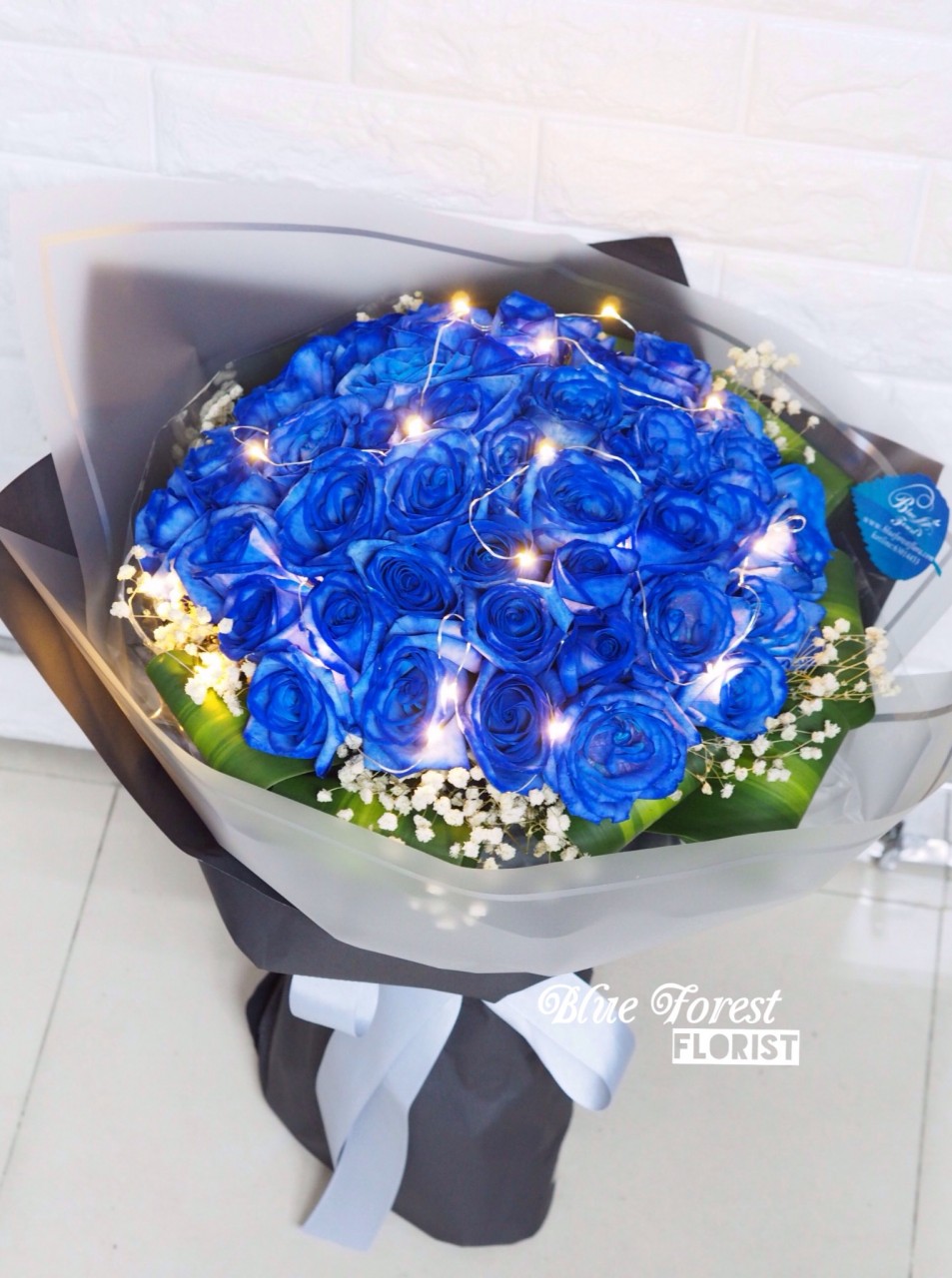 50枝荷蘭藍玫瑰LED燈花束