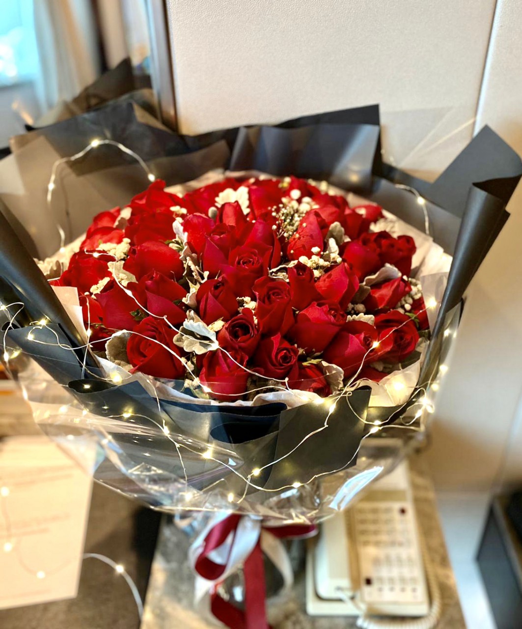 小清新*36/50枝淡粉紅玫瑰配滿天星花束*