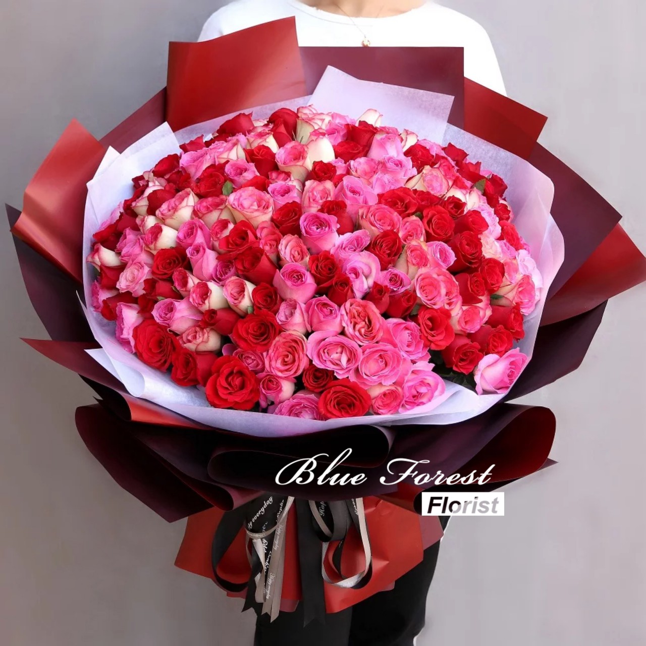 99枝紅玫瑰配滿天星花束(可選白色/黑色包裝)