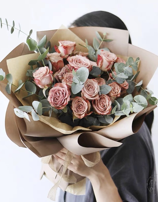 香薰淺啡色玫瑰花束18支裝