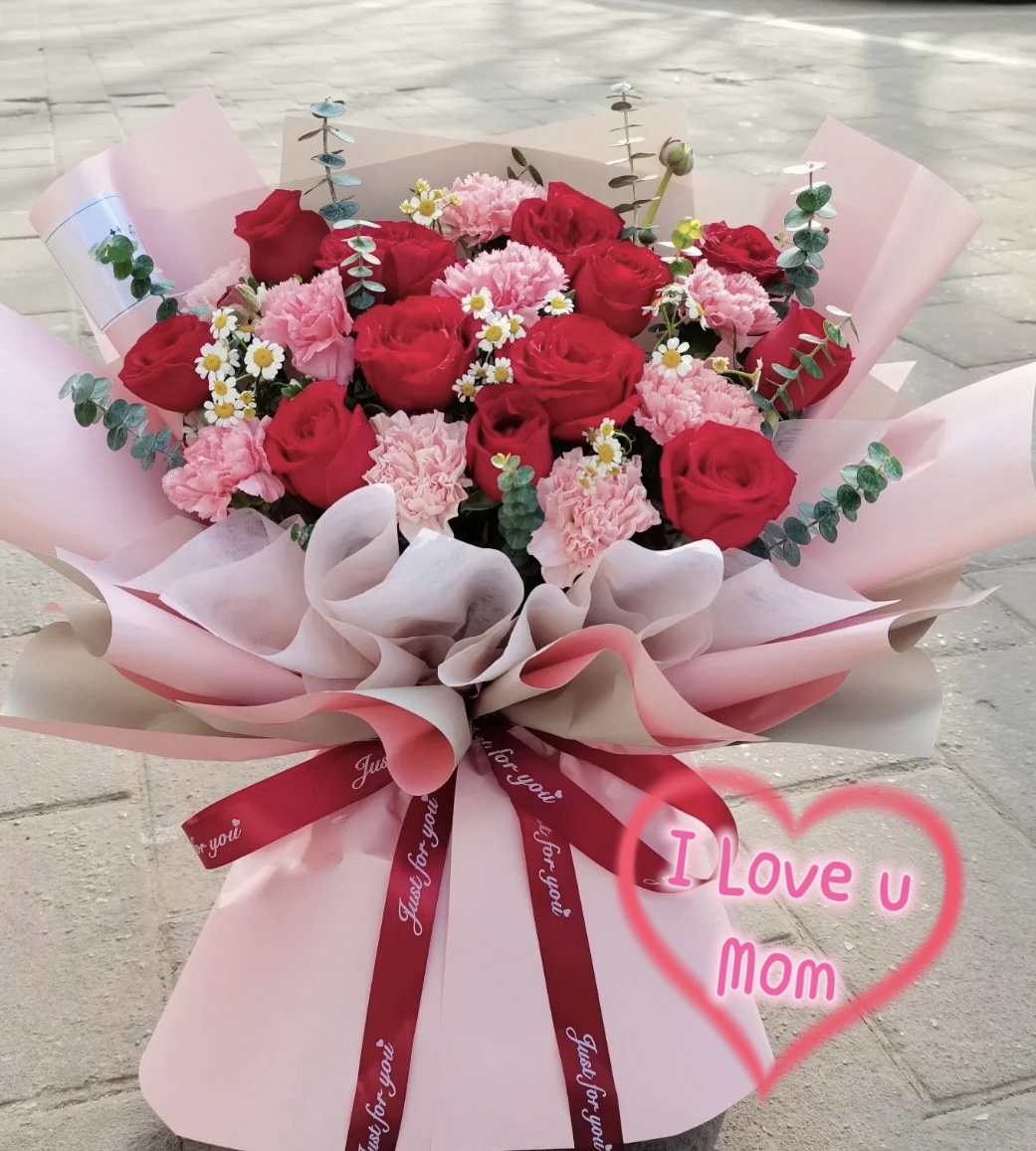 Mother's day精選*10支紅玫瑰配8支粉紅康乃馨花束